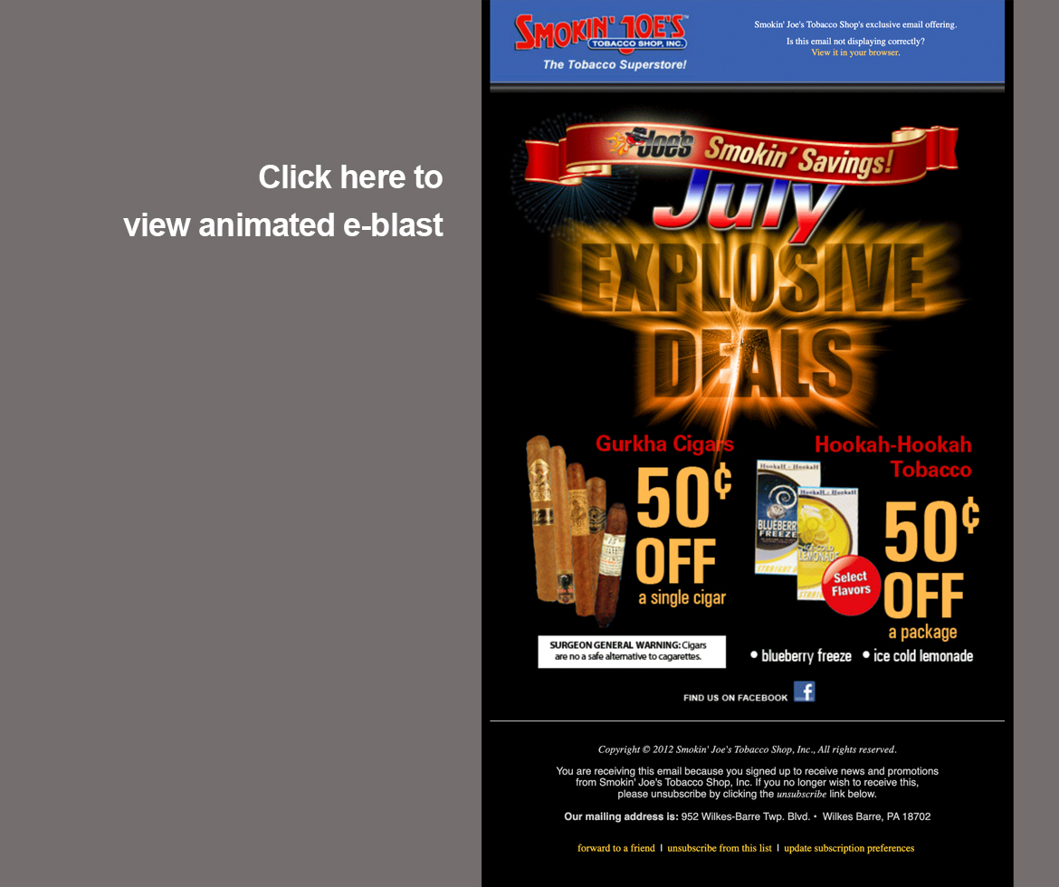An animated e-blast where fireworks blast in the background. Wait a couple seconds to load. Click HERE to see the e-blast animate. Conceptualized, designed and coded