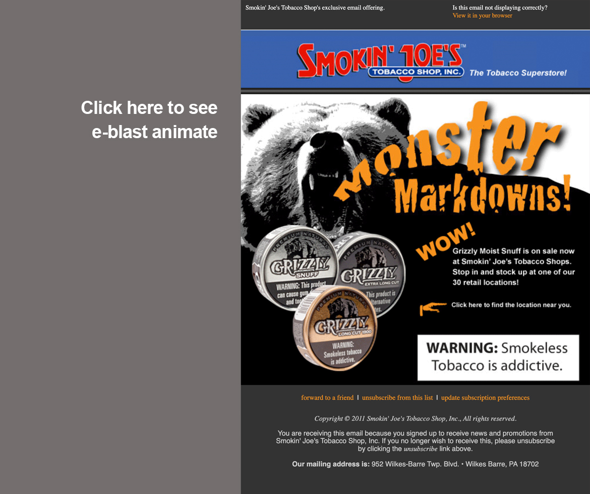 An animated e-blast where the paw of the bear will come out and take away the containers. Wait a couple seconds to load. Click HERE to see the e-blast animate. Conceptualized, designed and coded